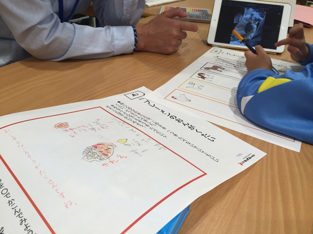 読書作文教室の授業では、先生やクラスメイトと一緒に、1冊/月の書籍をじっくりと音読・黙読しながら表現方法や語彙量を増やし、内容理解を深めていきます。特に「言葉とイメージ」がイコールにならないことが原因でイメージができないことが多いため、分からない言葉があった時は、iPadや図鑑などを使い、その場で言葉のイメージをつなげていくことで、場面描写を理解できるようになっていきます。