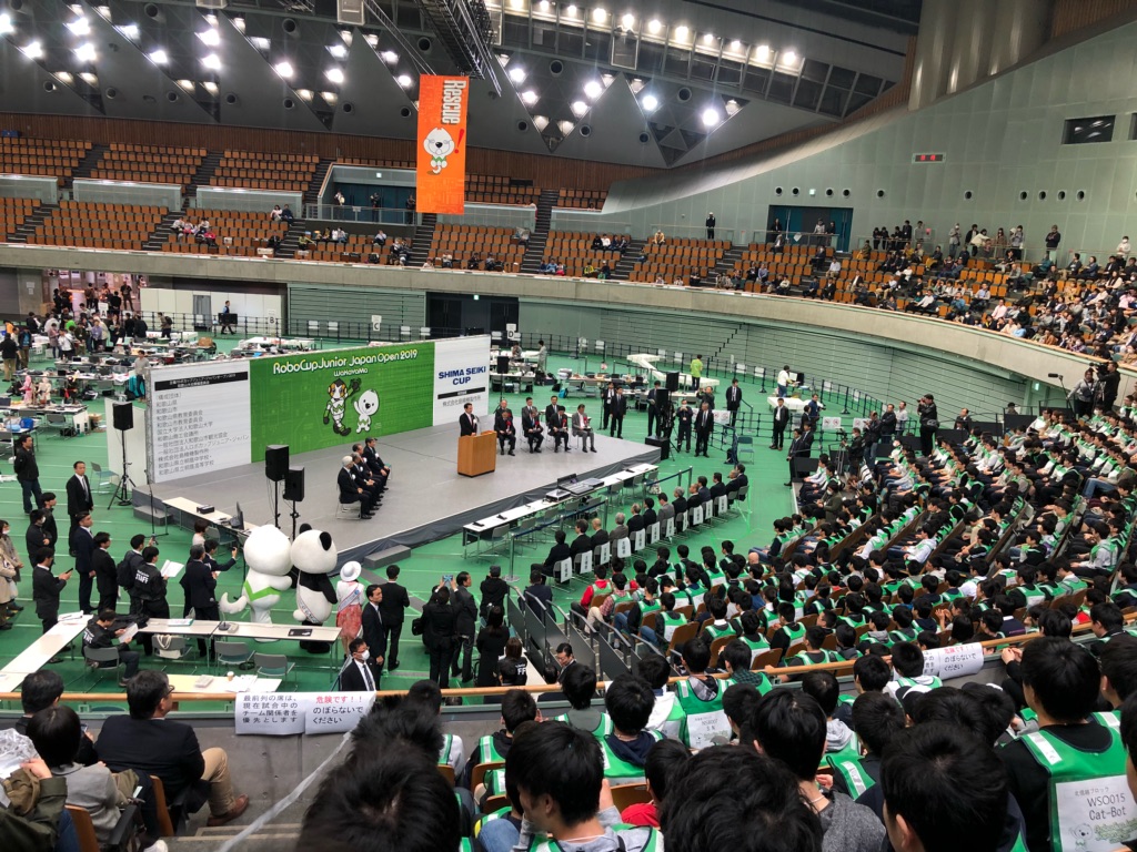 4月27日~29日に、「ロボカップジュニア2019 Japan Open和歌山(RCJJ)」が昨年に引き続き、和歌山県和歌山市の「ビッグホエール」で行われました。ロボカップジュニアは、世界大会まで続くロボットの国際競技会で、地方大会➠ブロック大会➠ジャパンオープン(全国大会)➠世界大会と続きます。他国でも同じような予選が行われ、世界大会では、各国の代表チームが集まり、競技を行っています。