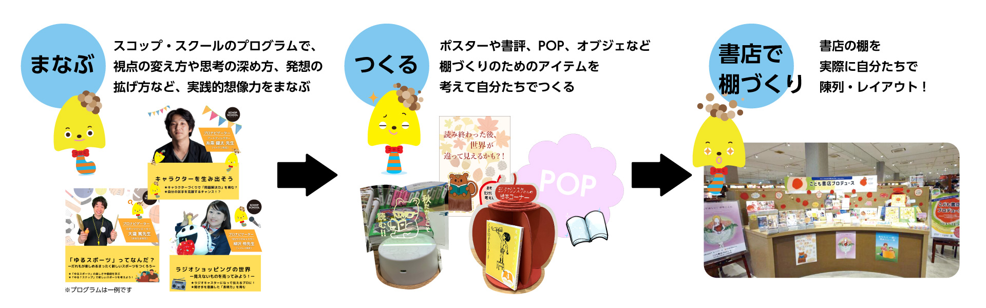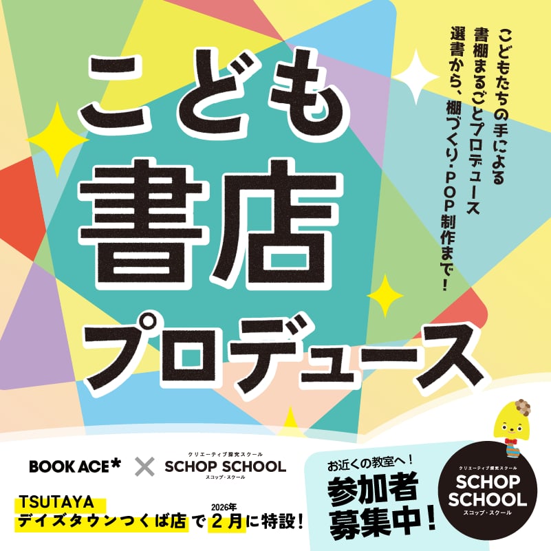 当スクール内で開講している「スコップ・スクール」は、株式会社ブックエース様(川又書店・ブックエース運営会社)とのコラボ企画として、子どもたちが商品提案から売場演出まで手掛ける、「こども書店プロデュース」を実施します!
